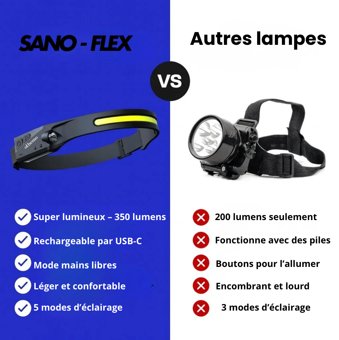 La lampe frontale Sano-flex résiste sans problème à la pluie, à la neige et au froid. Que vous partiez en balade le dimanche sur un chemin par mauvais temps ou que vous sortiez promener votre chien sous la pluie, vous pouvez compter sur une lumière fiable à chaque sortie.
